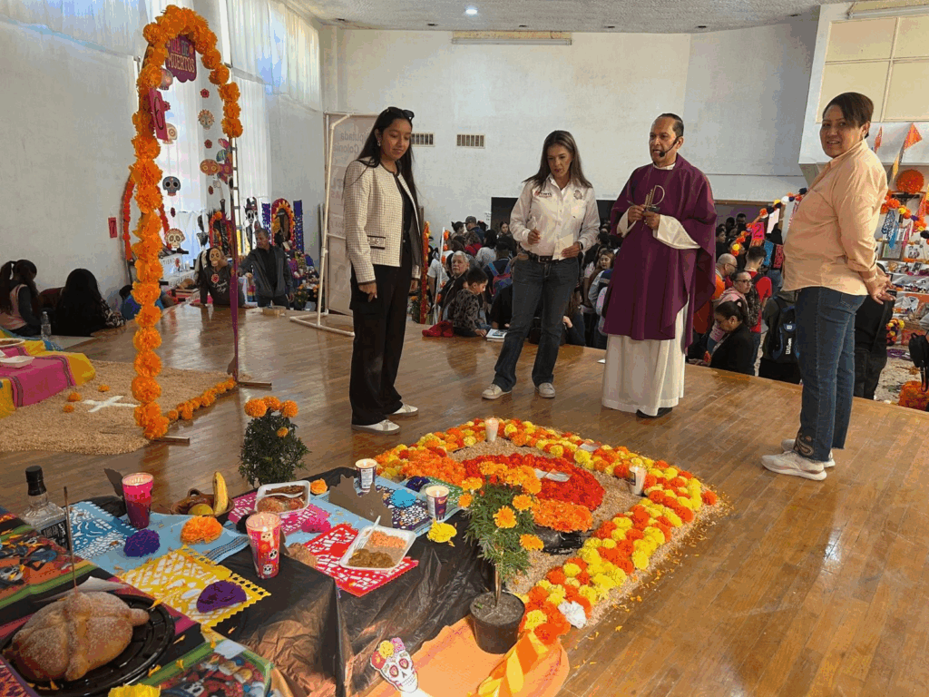 La diputada local Xóchitl Contreras celebró el pasado domingo 2 de noviembre el tradicional Día de Muertos en compañía de los feligreses vecinos de la Colonia Eréndira, evento encabezado por el Padre Javier Calvillo, así como de vecinos y vecinas del sector, quienes participaron con gran entusiasmo en las diversas actividades organizadas por la legisladora juarense.