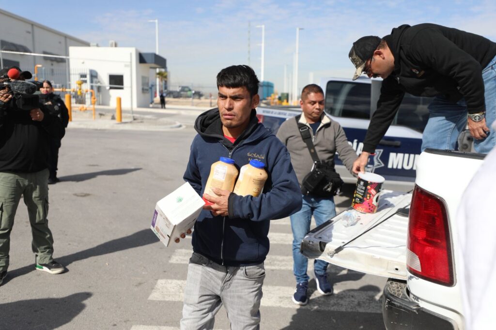 Personal de la Coordinación de Atención Ciudadana del Municipio visitó este día a las personas que trabajaron en cuatro maquiladoras situadas al suroriente de la ciudad y que suspendieron sus operaciones días atrás, llevándoles alimentos y bebidas.