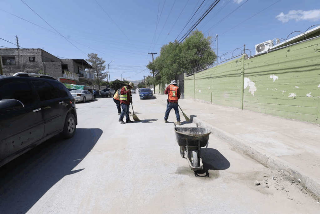 Como parte de las acciones de recuperación por las recientes lluvias en la ciudad, la Dirección de Limpia le dio apoyo este lunes a la Escuela Primaria Centauro del Norte, ubicada en la colonia Fronteriza Baja, la cual fungió como centro de mando durante el operativo desplegado por dependencias del Gobierno Municipal para ayudar a las familias afectadas.
