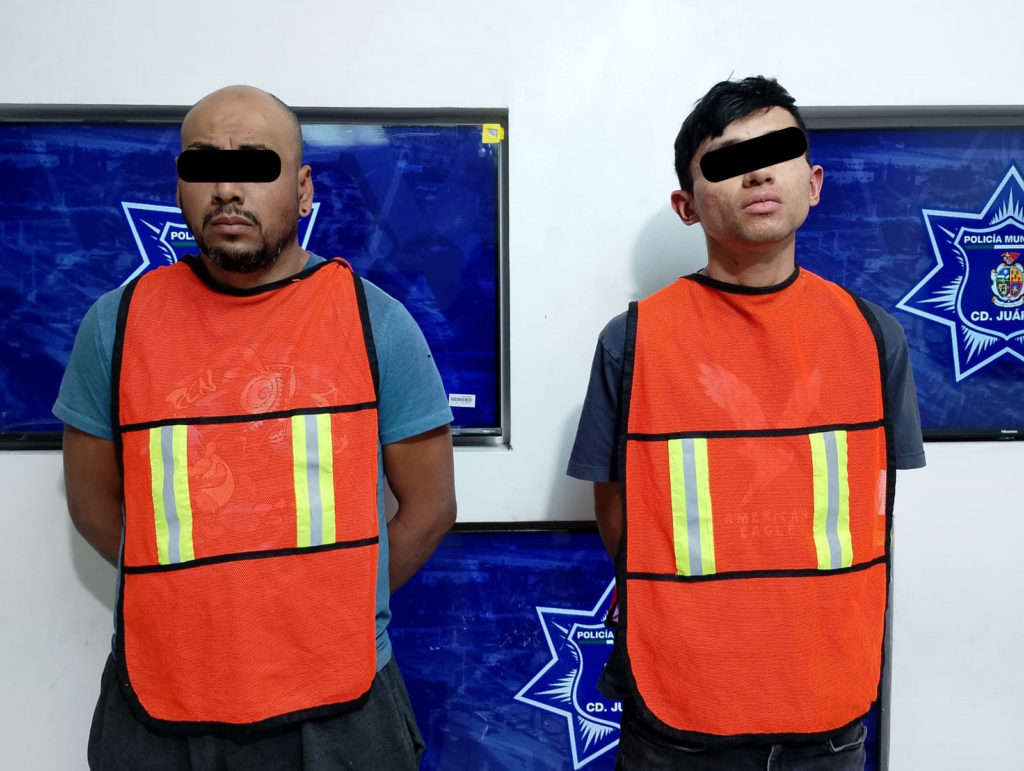 Agentes de la Secretaría de Seguridad Pública Municipal arrestaron a Julio Adrian D. M. y Julio Gustavo A. R., por su presunta responsabilidad en la comisión del delito de posesión de vehículo con reporte de robo y delitos contra la salud.