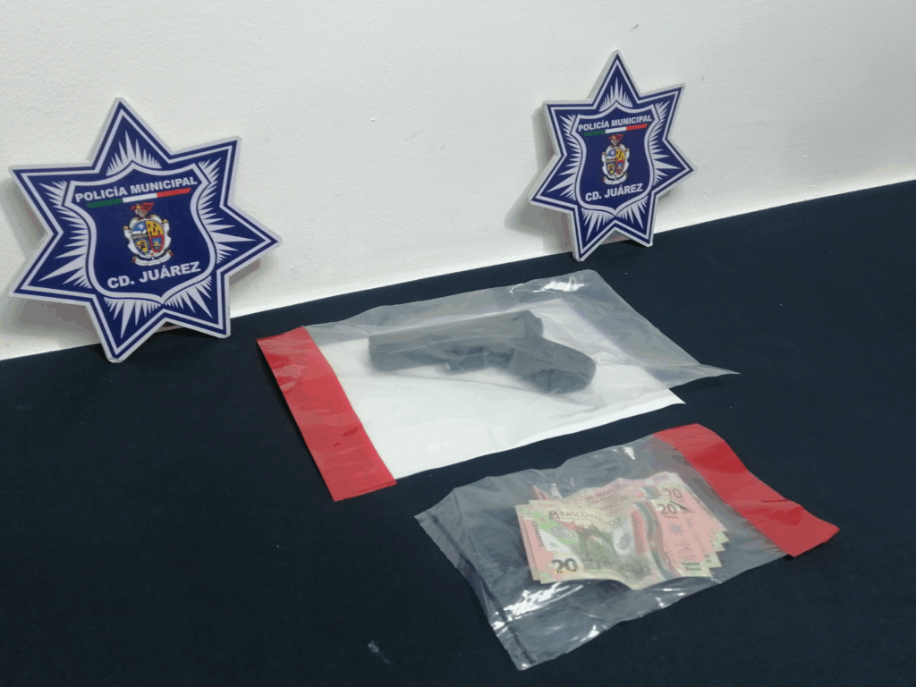 Razón por la cual se le dio alcance y, al realizarle una revisión por protocolos de seguridad, le fue asegurada de entre sus prendas una réplica de arma de fuego, la cual resultó ser de juguete, la misma que utilizó para cometer el robo, así mismo el dinero que la víctima reconoció como de su propiedad.