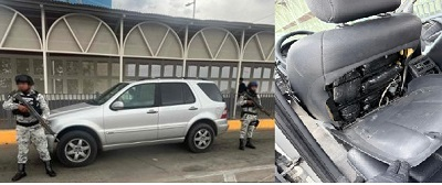 Informó la Guardia Nacional que elementos suyos, coordinados con la ANAM, detectaron nueve paquetes de posible metanfetamina en forma de cristalocultos en el asiento de una camioneta, cuando pretendía ingresar al país.