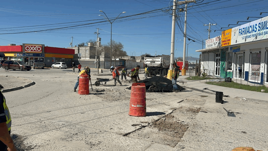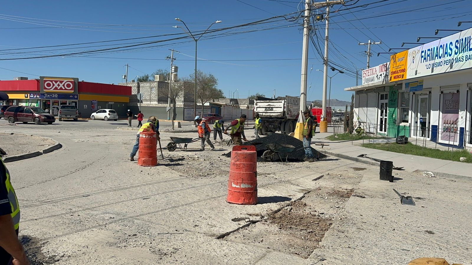 Como parte del operativo de atención en distintos sectores de la ciudad, la Dirección General de Obras Públicas mantiene cuadrillas de bacheo en las calles Paseo del Sur y la avenida Lote Bravo, en el suroriente de la mancha urbana.