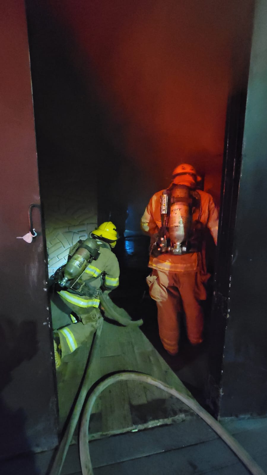 Al lugar acudieron cinco unidades del Departamento de Bomberos, cuyos integrantes trabajaron de forma coordinada para controlar y extinguir el fuego, logrando evitar que las llamas se propagaran a comercios aledaños.