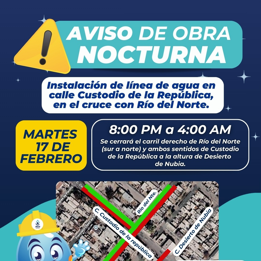 Esta intervención no afectará el suministro de agua potable, únicamente la circulación vehicular en los cruces antes mencionados, por lo que se exhorta a la ciudadanía a tomar rutas alternas y atender la señalización vial.