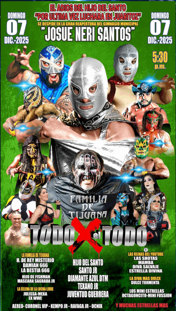 En conferencia de prensa el hijo del Santo en su gira de despedida, comento que su encuentro para el 7 de Diciembre en el renovado Gimnasio Municipal José Neri Santos » Caserón de la Maria Martinez y Mariscal» donde se enfrentaran, El hijo del Santo, Santo jr y los acompañara otro junior como lo es el hijo Rey Misterio en esta lucha de tríos tendrán como oponentes al Texano Jr, Juventud Guerrera y Diamante Azul.