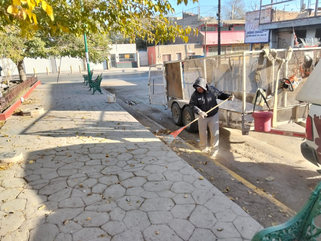 La Dirección General de Servicios Públicos Municipales, a través de la Dirección de Parques y Jardines, realizó tareas de mantenimiento en la Plaza Zaragoza, localizada al sur de la ciudad.