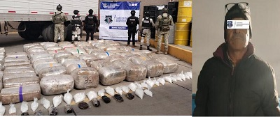 La Secretaría de Seguridad Pública del Estado dio a conocer que colaboró con autoridades federales para la captura de Javier L. J., de 54 años de edad, a quien le aseguraron un tractocamión con placas del Estado de México, en el cual transportaba casi una tonelada de presunta droga.
