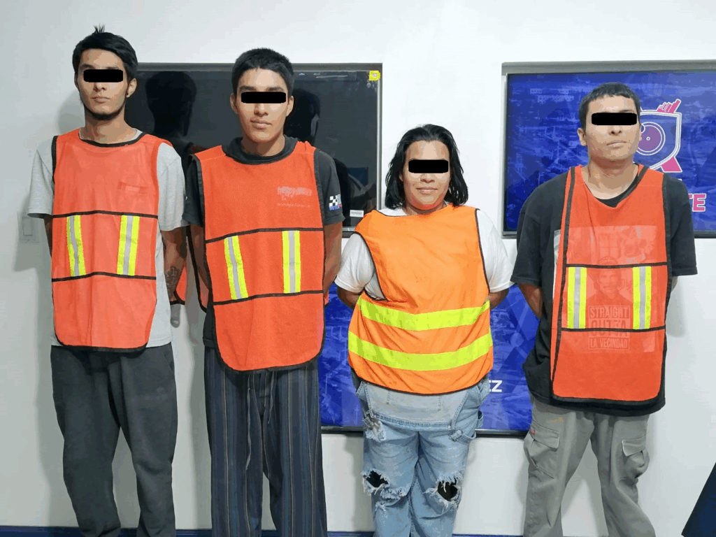Agentes de la Secretaría de Seguridad Pública Municipal, adscritos a la Estación de Policía del Distrito Sur, arrestaron a Gabriel V. G., Kevin Eduardo E. M., Edwin Alejandro E. M. y Perla Gabriela G. G., por su presunta responsabilidad en la comisión de delitos contra la salud, así como por desobediencia y resistencia de particulares, los cuales serán investigados por su posible participación en el robo de vehículos.