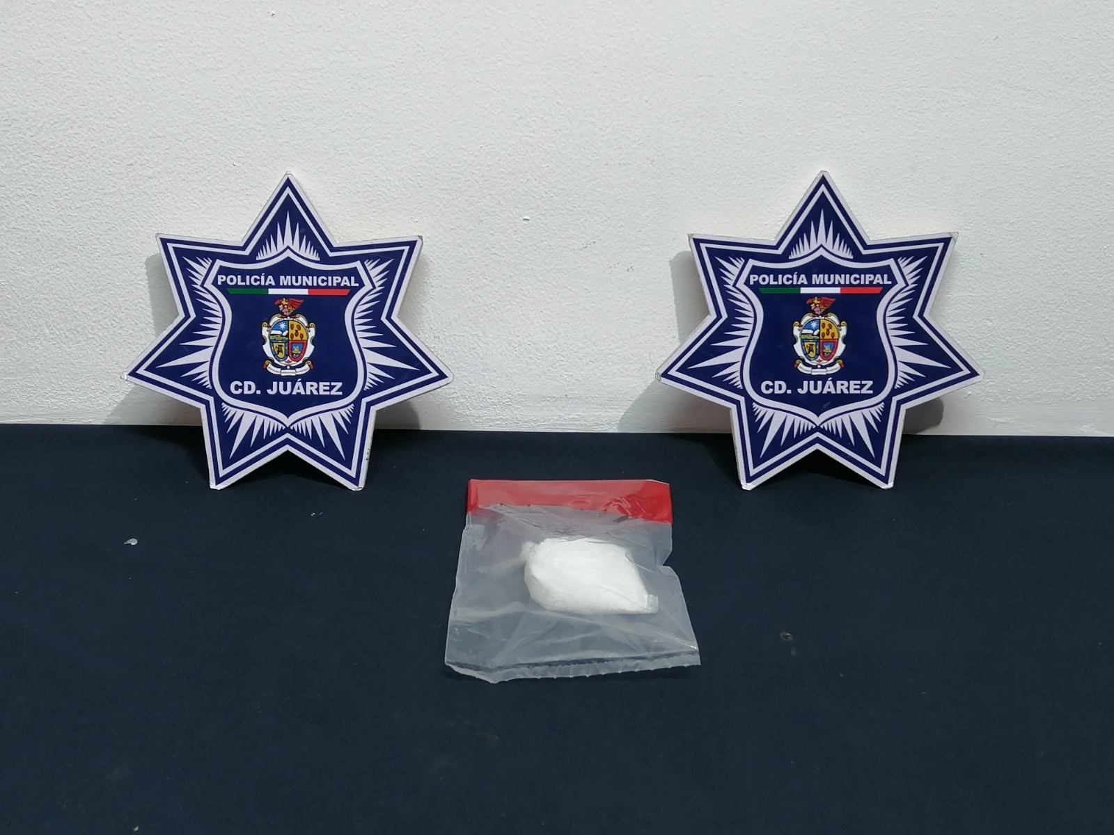 Motivo por el cual fueron abordados para realizarles una inspección preventiva por protocolos de seguridad, localizando en el interior del vehículo un envoltorio con la droga comúnmente conocida como cristal, con un peso aproximado de 60 gramos, procediendo con la detención de los tripulantes.