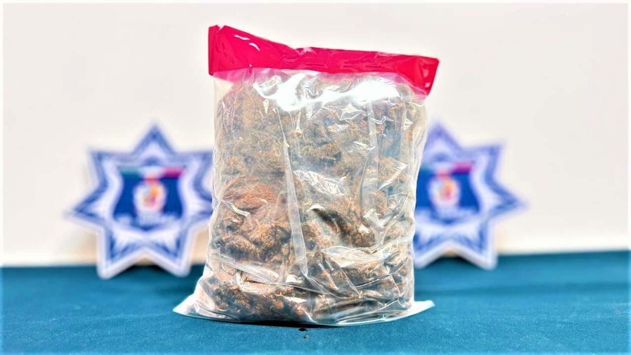 Al abordarlo para informarle que sería presentado ante el Juez Cívico, los oficiales procedieron a realizarle una inspección preventiva, localizándole entre sus pertenencias una bolsa de plástico que contenía marihuana, con un peso aproximado a más de una libra y media, por tal razón fue detenido quien dijo llamarse Jesús Antonio G. R. de 40 años.