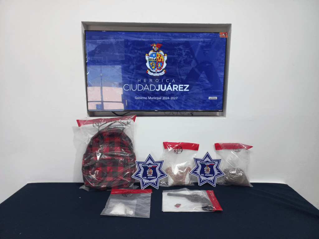Durante la revisión, se localizó en el interior de la camioneta una mochila que contenía un arma de fuego tipo revólver calibre 22, con su cilindro abastecido con cinco cartuchos útiles, además de una bolsa de plástico con marihuana la cual dio un peso aproximado de 140 gramos y dos envoltorios de plástico transparente con aproximadamente 580 gramos de cristal, procediendo con su detención.