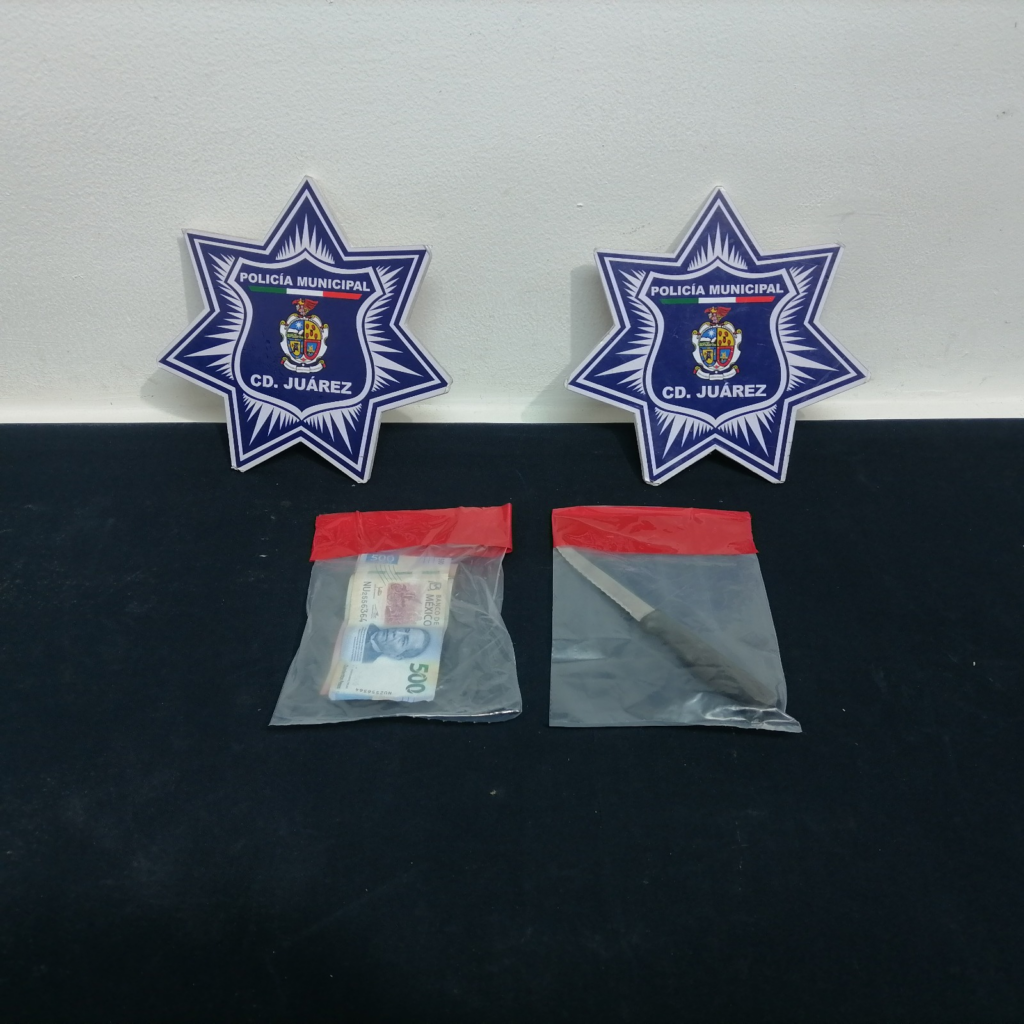 Al ser intervenido conforme a los protocolos de seguridad, se le realizó una inspección preventiva, localizándole entre sus pertenencias dinero en efectivo hurtado de la caja registradora, así como un arma blanca, con la cual presuntamente cometió el ilícito, por lo anterior, fue detenido quien dijo llamarse José Manuel M. N. de 23 años.