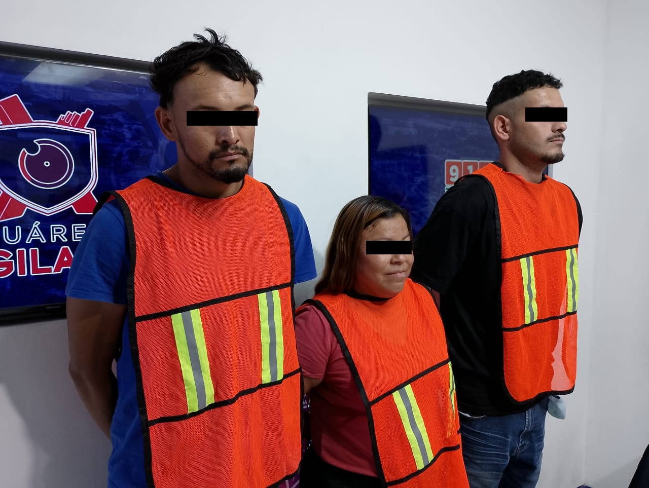 Previa lectura de derechos, Aracely R. G. de 35 años, Abundio Jesús M. S. de 27 años y Luis Javier A. C. de 30 años, fueron consignados ante la autoridad correspondiente por su presunta responsabilidad en la comisión de los delitos antes mencionados.