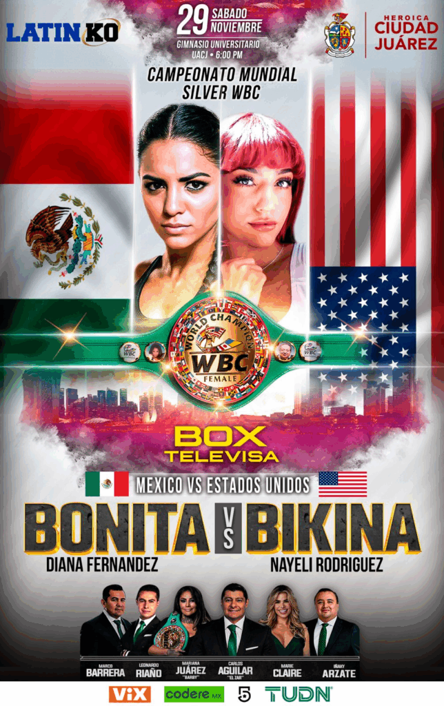 La boxeadora profesional Diana “La Bonita” Fernández se enfrentará por el cinturón del Campeonato Mundial Silver WBC contra la estadounidense Nayeli “Bikina” Rodríguez en una pelea de guantes rosas presentada por la empresa juarense Latín KO.