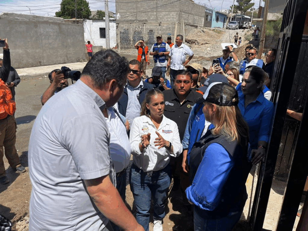 La gobernadora Maru Campos Galván realizó una visita a las colonias del norponiente de Ciudad Juárez que resultaron severamente afectadas por las lluvias. La diputada local Xóchitl Contreras acompañó a la mandataria estatal en un recorrido por las calles y casas que sufrieron daños, constatando personalmente la magnitud de las afectaciones.