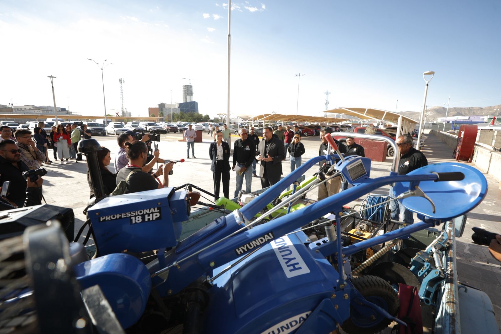 El Presidente Municipal, Cruz Pérez Cuéllar, hizo entrega de equipo industrial a la Dirección de Desarrollo Rural, con el fin de mejorar las condiciones de la dependencia y por ende, el apoyo que se ofrece a las y los productores del campo juarense.