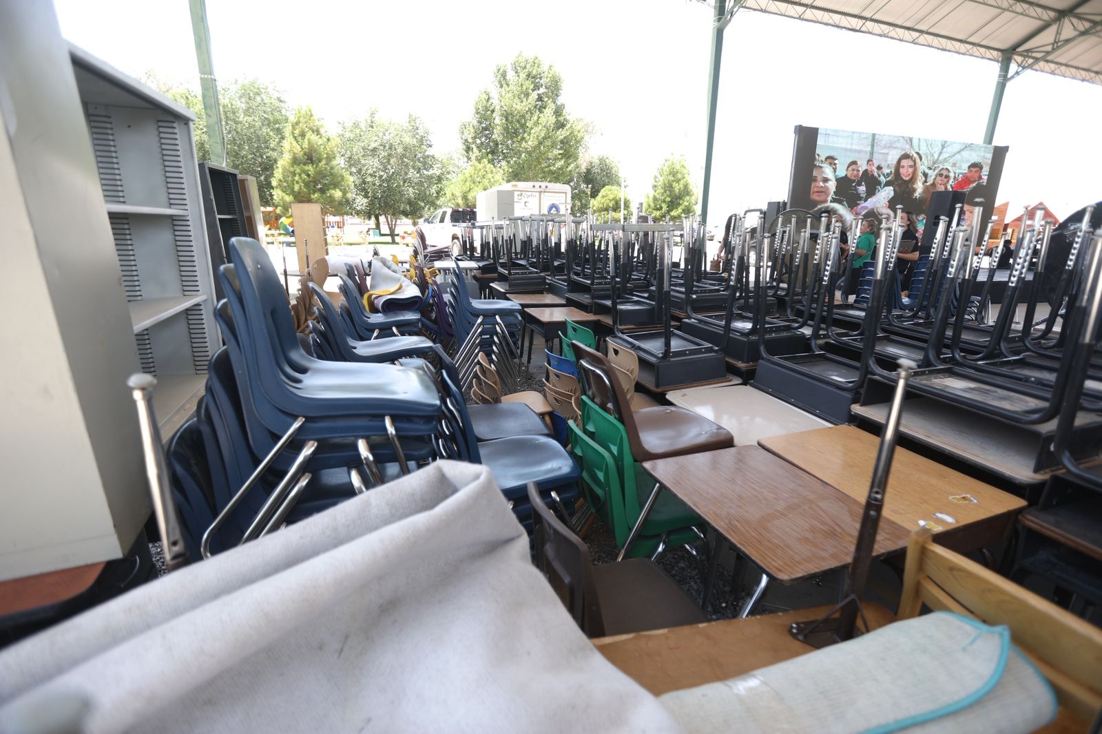 Enríquez Parada informó que se hizo la donación de más de 2 mil artículos por parte de Más x Chihuahua, entre ellos, mesas, sillas, estantes, archiveros y escritorios.