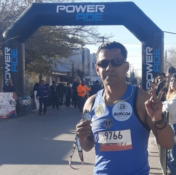El policía municipal corrió la distancia de 5.5 kilómetros, donde logró el quinto lugar general y el primer lugar en su categoría (40-49 años), deteniendo el cronómetro en 19 minutos con 51 segundos, entre aproximadamente 600 corredores que se dieron cita en esta justa deportiva.