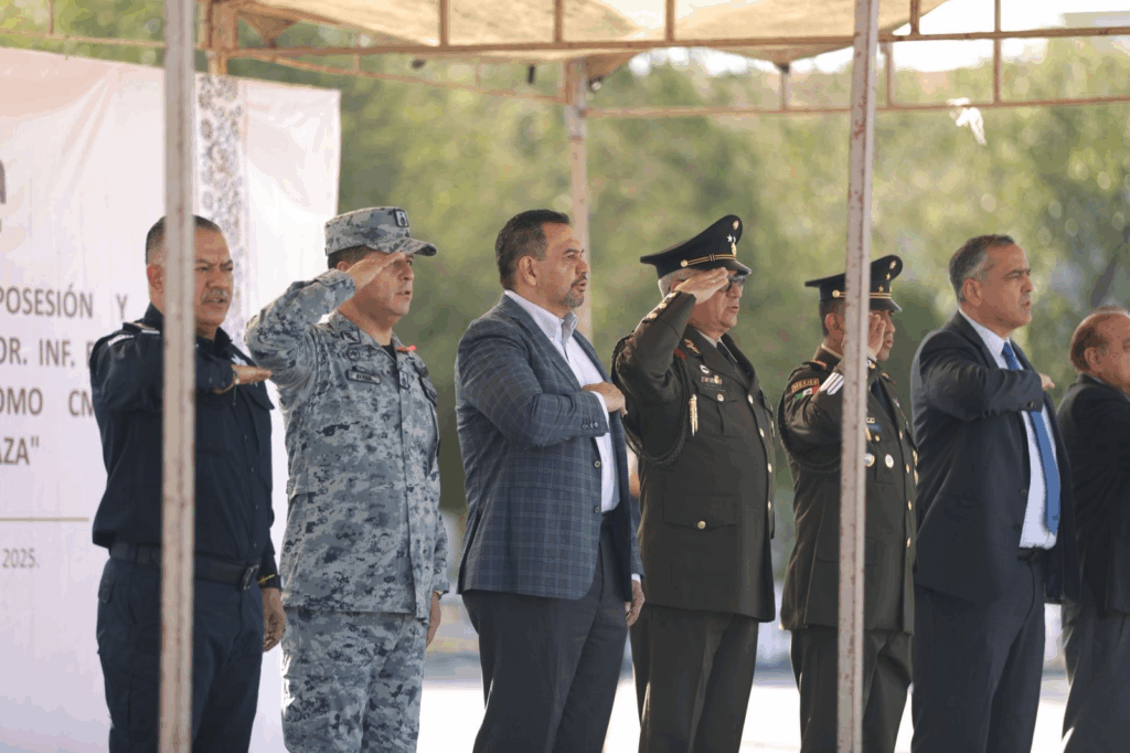 El Presidente Cruz Pérez Cuéllar asistió este viernes a la ceremonia de toma de protesta del Coronel de Infantería del Estado Mayor, Mauricio Cansino Báez, quien asumió el cargo de comandante interino de la Guarnición Militar de Ciudad Juárez.