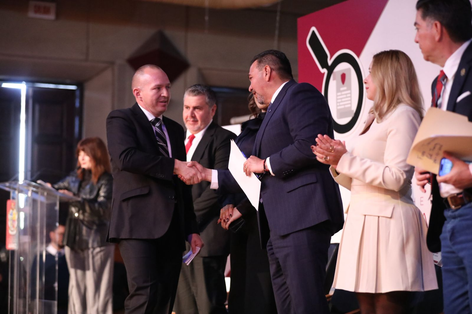 El presídium, estuvo integrado por la presidenta del DIF Municipal, Rubí Enríquez; el presidente del Comité de Transparencia, Óscar Murillo Delgado; el secretario de la Comisión de Transparencia, Acceso a la Información Pública y Parlamento Abierto de la legislatura del Congreso del Estado de Chihuahua, diputado Octavio Javier Borunda Quezada; y la síndica municipal, Ana Carmen Estrada.