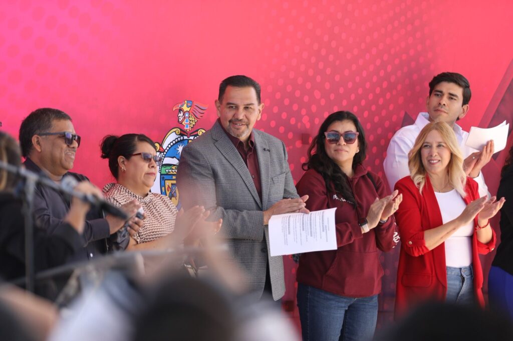 El evento se desarrolló en la Escuela Primaria Forjadores de la Patria, donde el alcalde destacó que el Gobierno Municipal está por alcanzar 600 escuelas intervenidas en distintos puntos de la ciudad, como parte del programa de mejoramiento de infraestructura educativa.