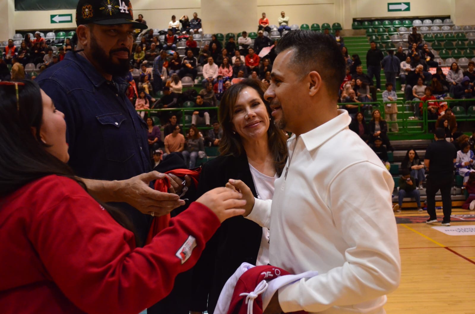Los profesionales del baloncesto desde el viernes, acompañaron al presidente municipal Cruz Pérez Cuéllar, en la reinauguración del gimnasio municipal Enrique «Kiki» Romero de la colonia Azteca.