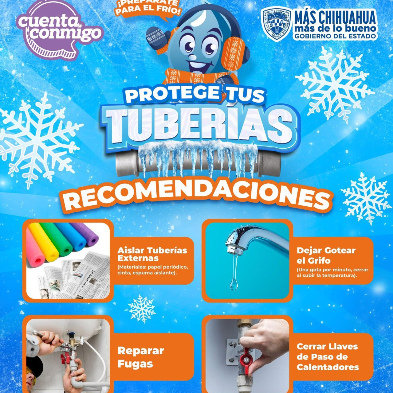 “EXHORTA LA J+ A PREVENIR FUGAS DE AGUA ANTE DESCENSO DE TEMPERATURAS”