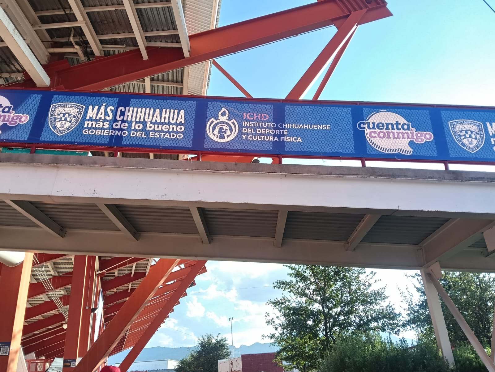 Todos los accesos a la entrada para butacas y gradas fueron retiradas de su valla de contención,para ser sustituidos por los del gobierno del Estado con las leyendas «Más Chihuahua Más de lo Bueno». ICHD Instituto Chihuahuense del Deporte y Cultura Física.