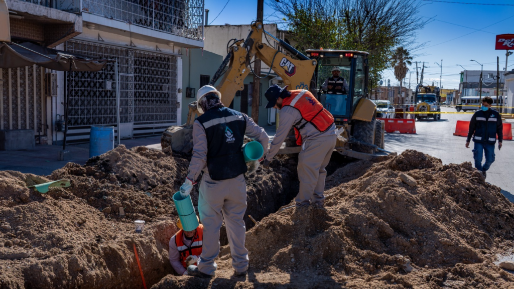 De manera paralela, en esta misma zona, la J+ trabaja en la reparación de un hundimiento expuesto en el cruce de las calles 5 de Febrero y Antonio de Otermin, donde se instalan aproximadamente 18 metros de tubería de alcantarillado que ya había cumplido su vida útil.