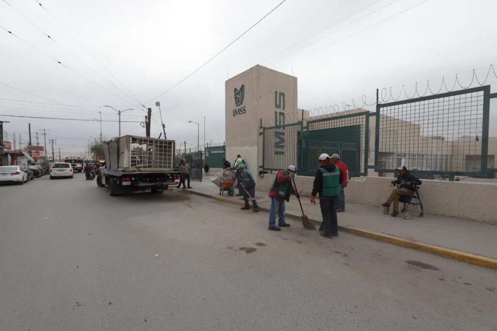 Las acciones se realizaron de manera simultánea. La primera tuvo lugar en la calle Miguel Hidalgo, entre Bromo y Cadmio, de la colonia Durango, donde se atendió una petición ciudadana relacionada con un puesto de lámina instalado sobre la banqueta frente a una clínica del Instituto Mexicano del Seguro Social, el cual obstruía el libre tránsito de las personas que acuden a consulta.
