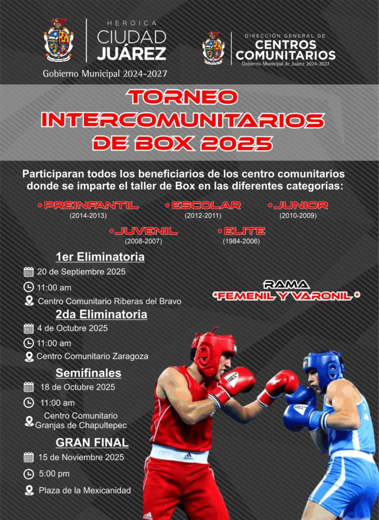 20 de septiembre arranca el Torneo Intercomunitarios de Box 2025, donde se enfrentarán los mejores peleadores de los centros comunitarios de la ciudad.