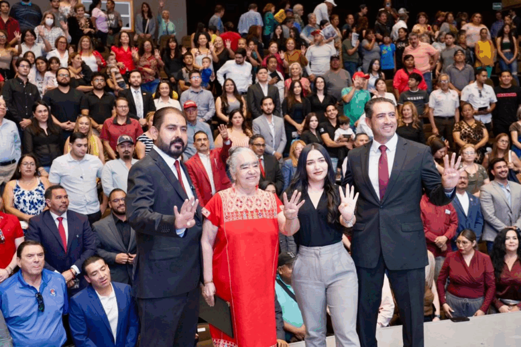 “Hugo González, que es un gran amigo, un compañero al que conozco desde hace muchos años, que nos tocó caminar juntos poniendo nuestro granito de arena para construir este gran partido al que pertenecemos. Miguel es un compañero que se ha integrado con nosotros un poco después, pero que ha demostrado que tiene la camiseta de la Cuarta Transformación. Elena Rojo: una iniciadora de nuestro movimiento, no solo de Morena, del movimiento de izquierda en el estado de Chihuahua, una mujer congruente, valiente de la cual muchas mujeres de izquierda nos sentimos orgullosas, identificadas”, compartió ante cientos de asistentes en el Museo Semilla.