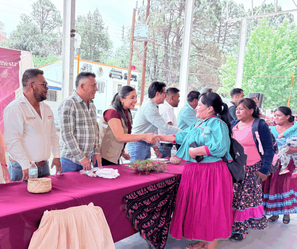 La delegada de Programas para el Bienestar en Chihuahua, Mayra Chávez Jiménez, encabezó esta mañana, en el poblado de San Rafael del municipio de Urique, enclavado en la Sierra Tarahumara, la entrega de 302 tarjetas de Banco del Bienestar a 277 comités de padres de familia del programa La Escuela Es Nuestra (LEEN), que atenderá a 277 planteles de educación básica y 25 de educación media superior, con una inversión social de $75,050,000.00.
