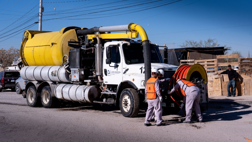 La Junta de Agua y Saneamiento de Juárez, concluyó los trabajos de mantenimiento en la red de alcantarillado y el desalojo de aguas negras en el fraccionamiento Villas de Alcalá.