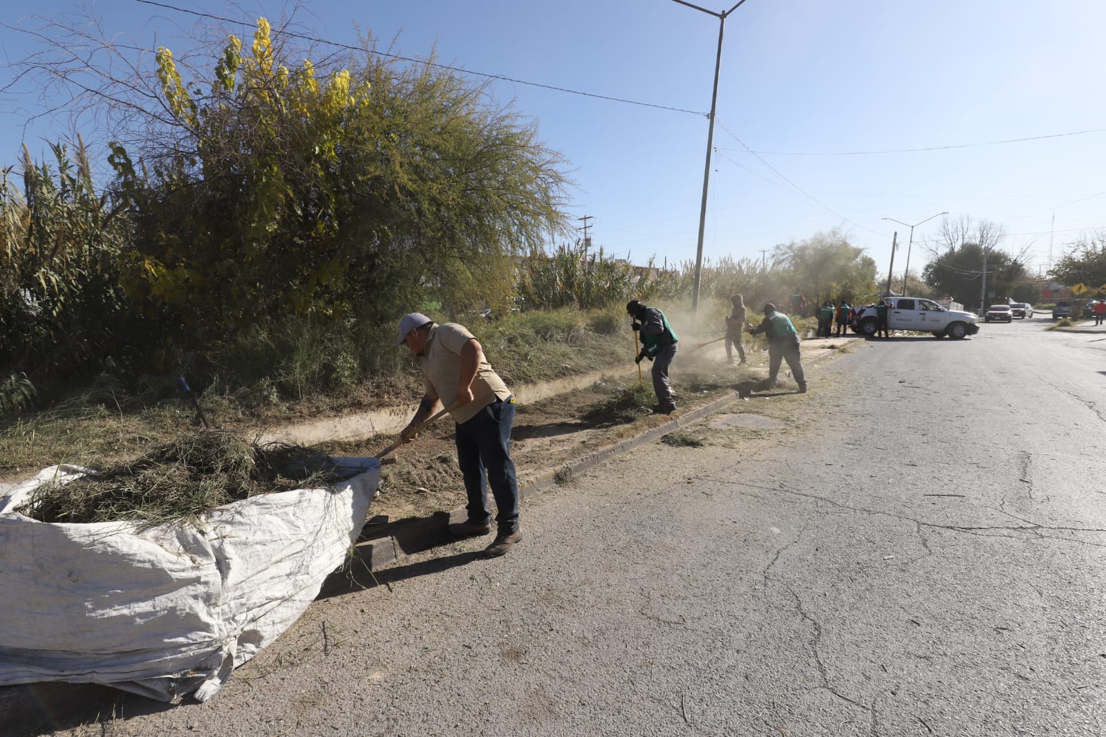 La Dirección General de Servicios Públicos Municipales, a través de la Dirección de Limpia, trabaja desde ayer y durante esta semana en la limpieza del cauce del Dren 2A, en el tramo que colinda con el Infonavit Casas Grandes.