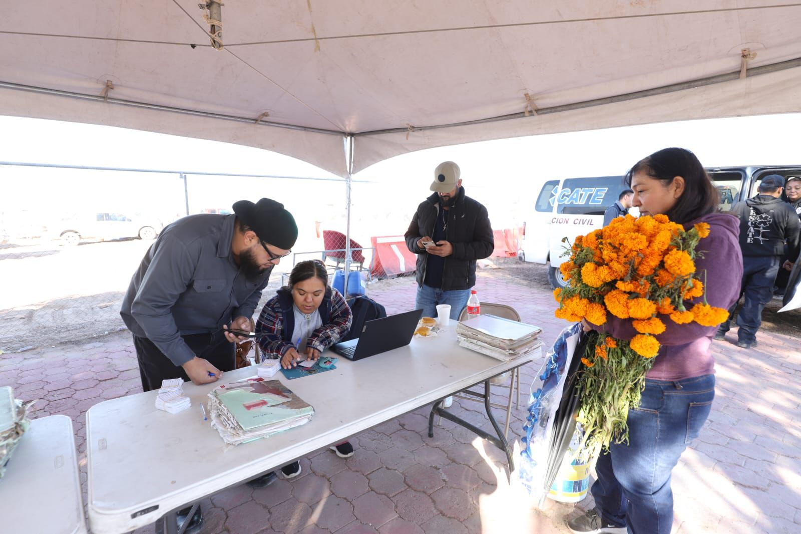 “Contamos con el apoyo de personal social que nos auxilia para brindar servicio a personas con problemas de movilidad, así como a quienes acuden con herramientas o materiales para realizar limpieza en las tumbas. También tenemos un equipo encargado de apoyar en la identificación de sepulturas, ya que muchos visitantes llegan con datos de sus familiares y se les ayuda a ubicarlos”, explicó el funcionario.