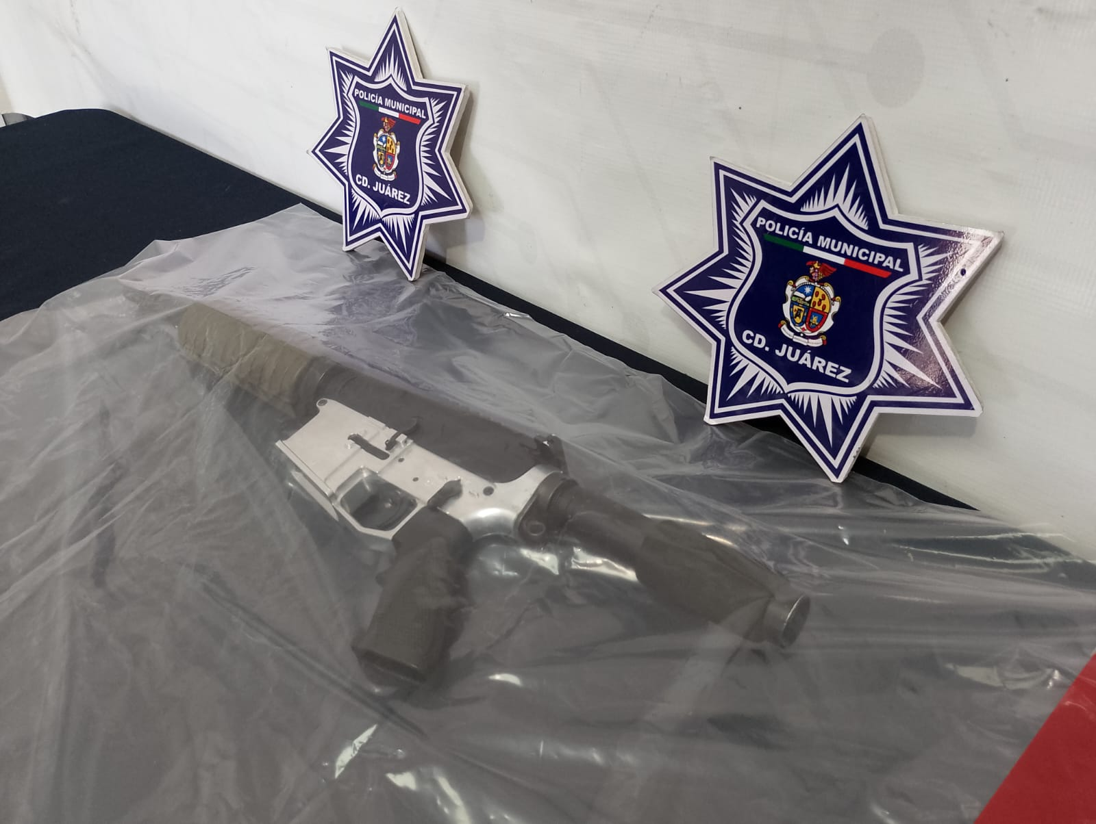 Al realizar una inspección preventiva, se localizó en una de las habitaciones un arma de fuego tipo fusil de asalto calibre .223 sin cargador y sin cartuchos, asegurando de la misma manera a un niño de 8 años, hijo de la adulta detenida, el cual fue canalizado al departamento de Trabajo Social de la Estación de Policía del Distrito Universidad.
