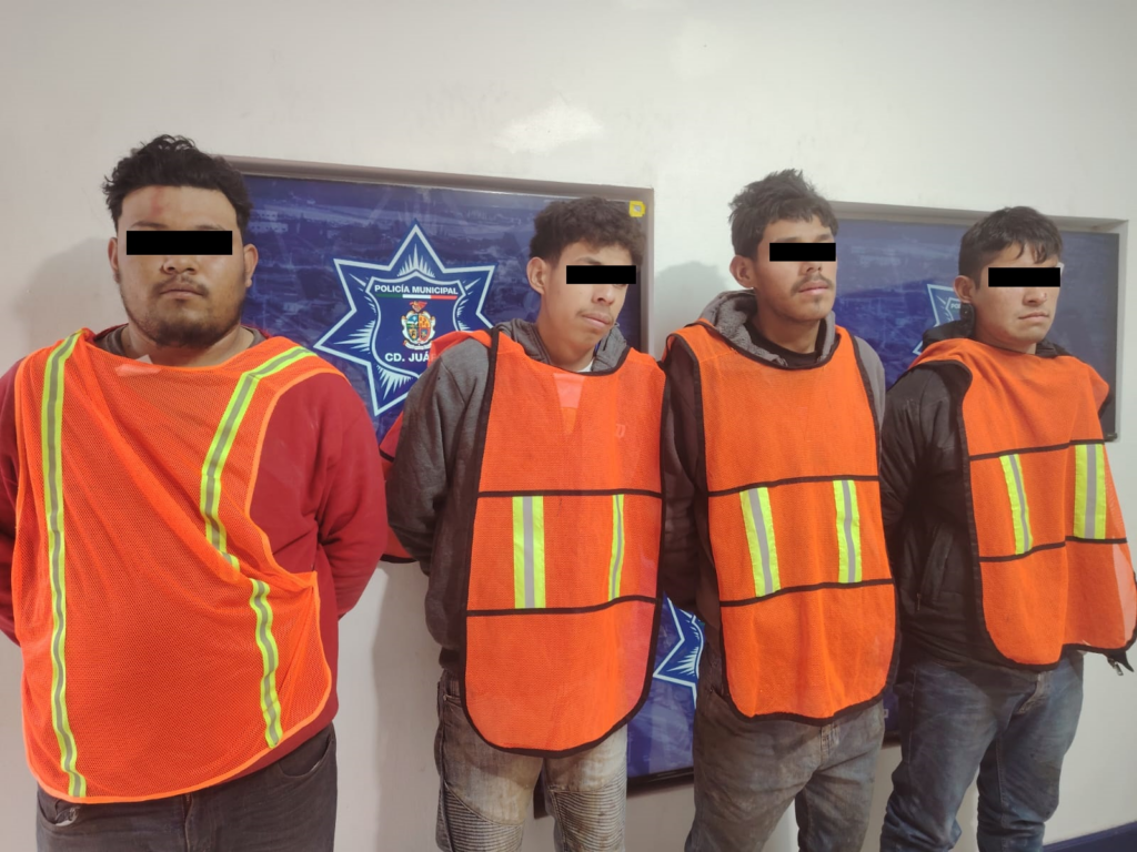 Elementos de la Secretaría de Seguridad Pública Municipal, realizaron el arresto de Diego Eduardo M. G., Iván Rodrigo A. T., Carlos Daniel B. A. y Yohan Vladimir M. G., por su presunta responsabilidad en la comisión del delito de robo.