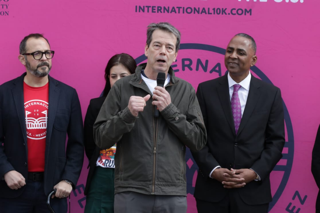 Eric Pearson, presidente y CEO de El Paso Community Foundation, dijo que se acortó la distancia de 15 a 10 kilómetros y aprovechó para agradecer el apoyo de Aduanas y Protección Fronteriza de los Estados Unidos (CBP por sus siglas en inglés) por hacer esta carrera posible.