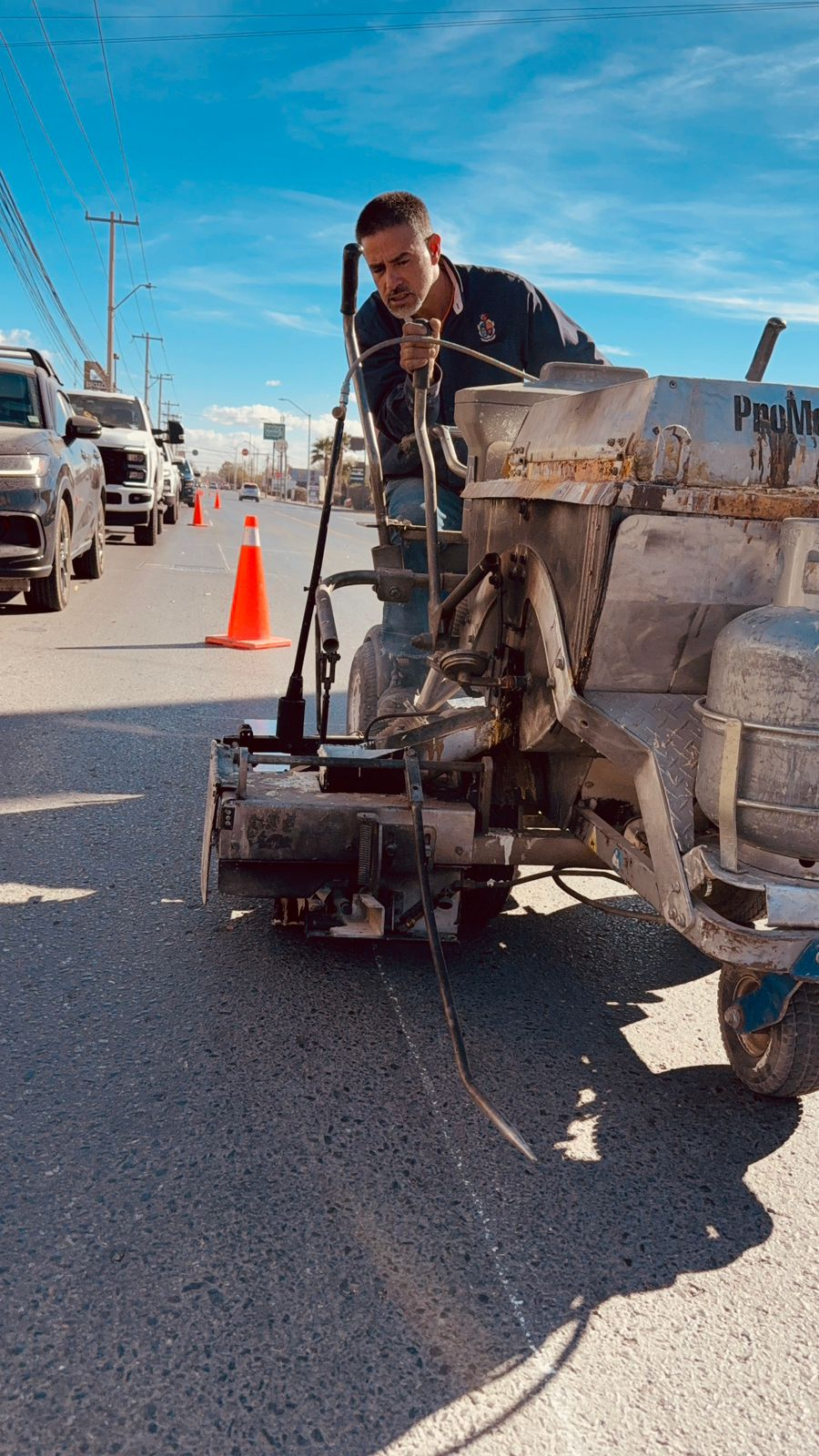 La Coordinación General de Seguridad Vial, por medio de una cuadrilla de colaboradores del área de Control de Tráfico, llevó a cabo trabajos de pintura para la correcta división de carriles sobre la avenida Valle del Sol.