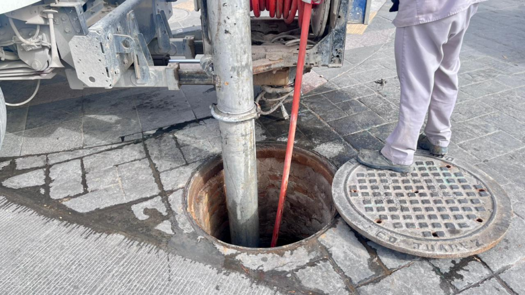 La Junta de Agua y Saneamiento de Juárez (J+) desplegó un operativo de limpieza en la red de alcantarillado de diversas calles de la zona centro de la ciudad, con el objetivo de prevenir brotes de aguas negras.