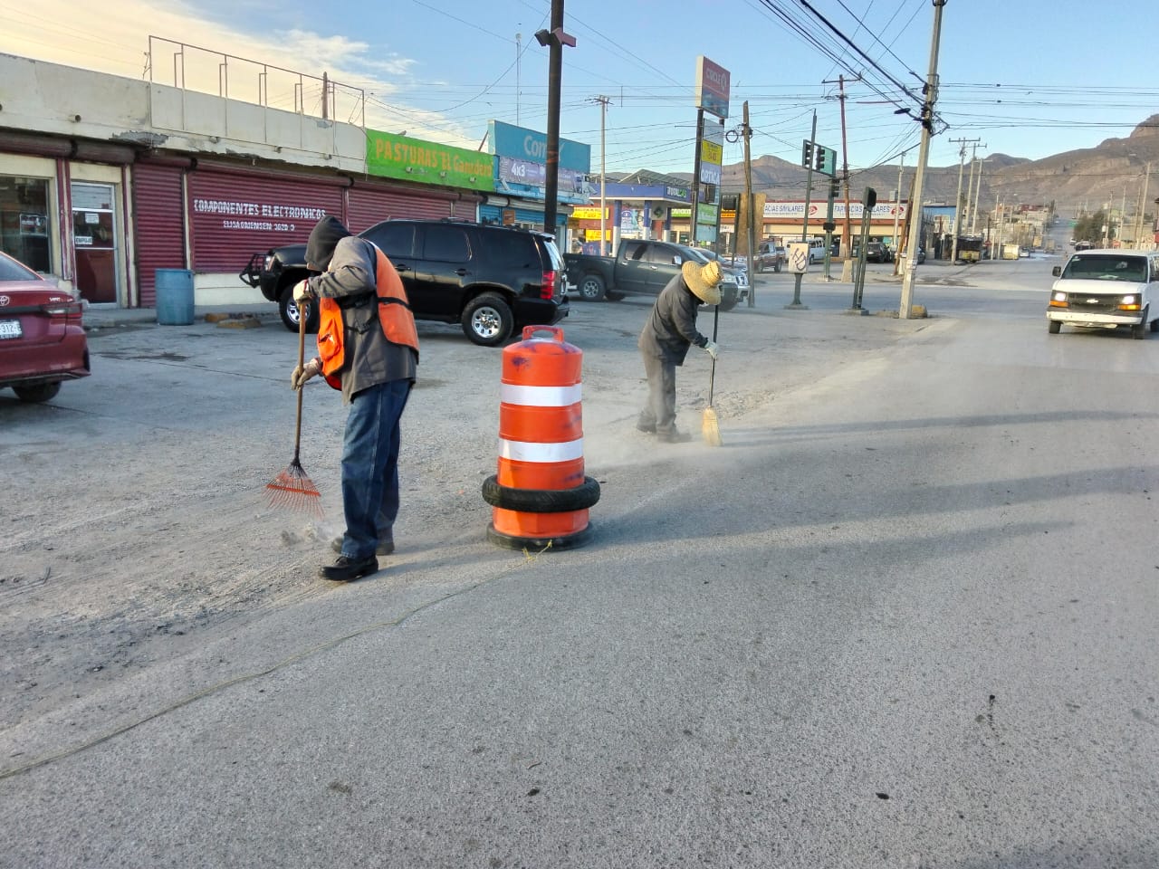 En el Valle de Juárez, la cuadrilla del sector suroriente realizó trabajos de limpieza, con el objetivo de continuar durante los próximos días y ampliar la cobertura en esa parte del municipio.