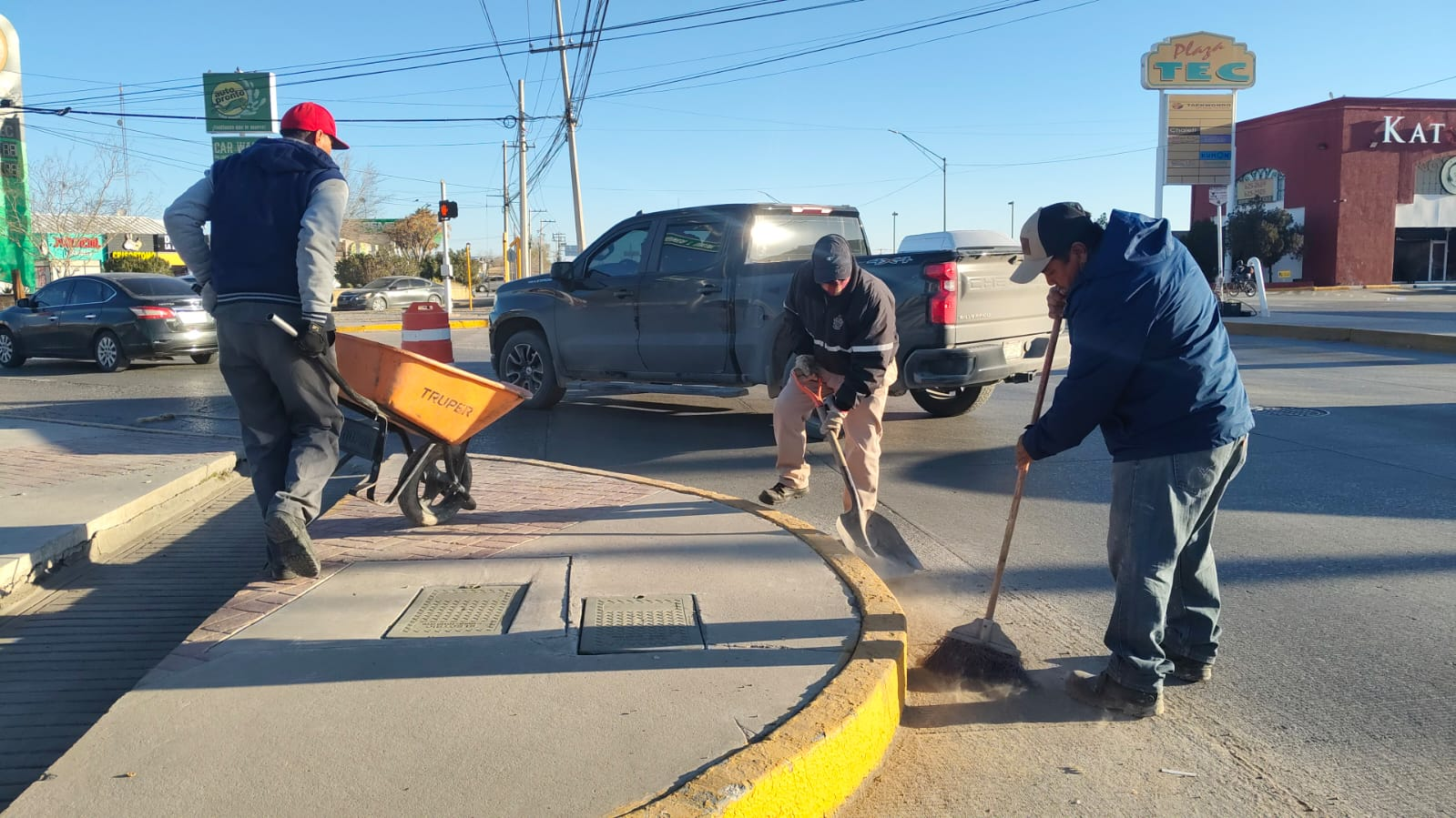 Dijo que durante los últimos dos días, las cuadrillas han intervenido avenidas como la División del Norte, Tomás Fernández y Gómez Morín, además de realizar limpieza en el distribuidor vial Talamás Camandari–Independencia.