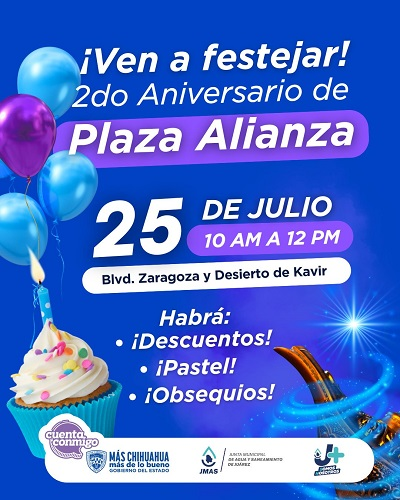 Mañana viernes, la Junta de Agua y Saneamiento de Juárez llevará a cabo el primer sorteo de su campaña “Paga a Tiempo y Gana en Grande”, el cual coincide con el segundo aniversario de apertura del Centro de Atención a Usuarios ubicado en Plaza Alianza.