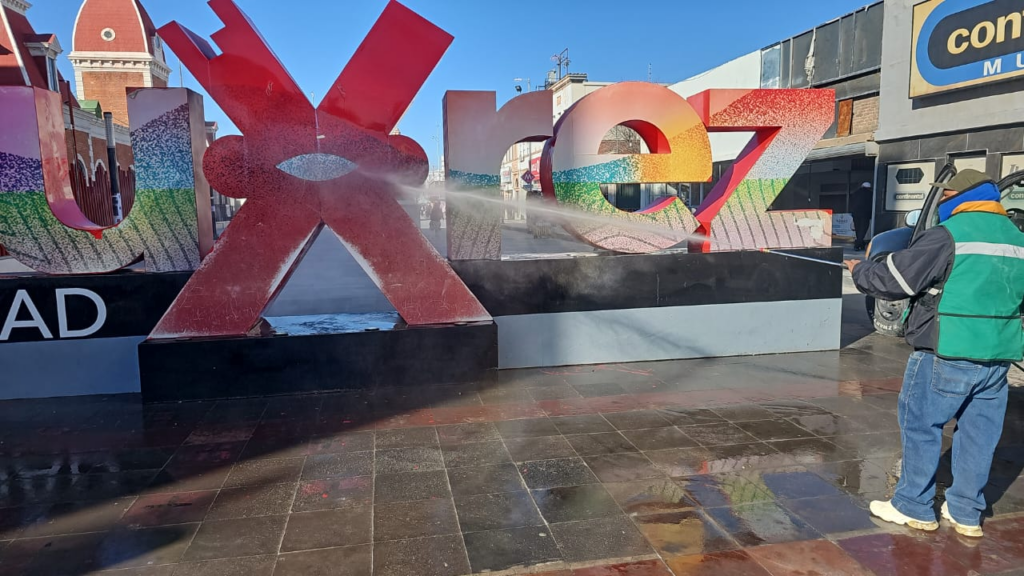 El funcionario explicó que este fin de semana la cuadrilla fija realizó el lavado de contenedores y de las letras simbólicas ubicadas sobre la avenida 16 de Septiembre, como parte del mantenimiento integral de los espacios públicos en el primer cuadro de la ciudad.