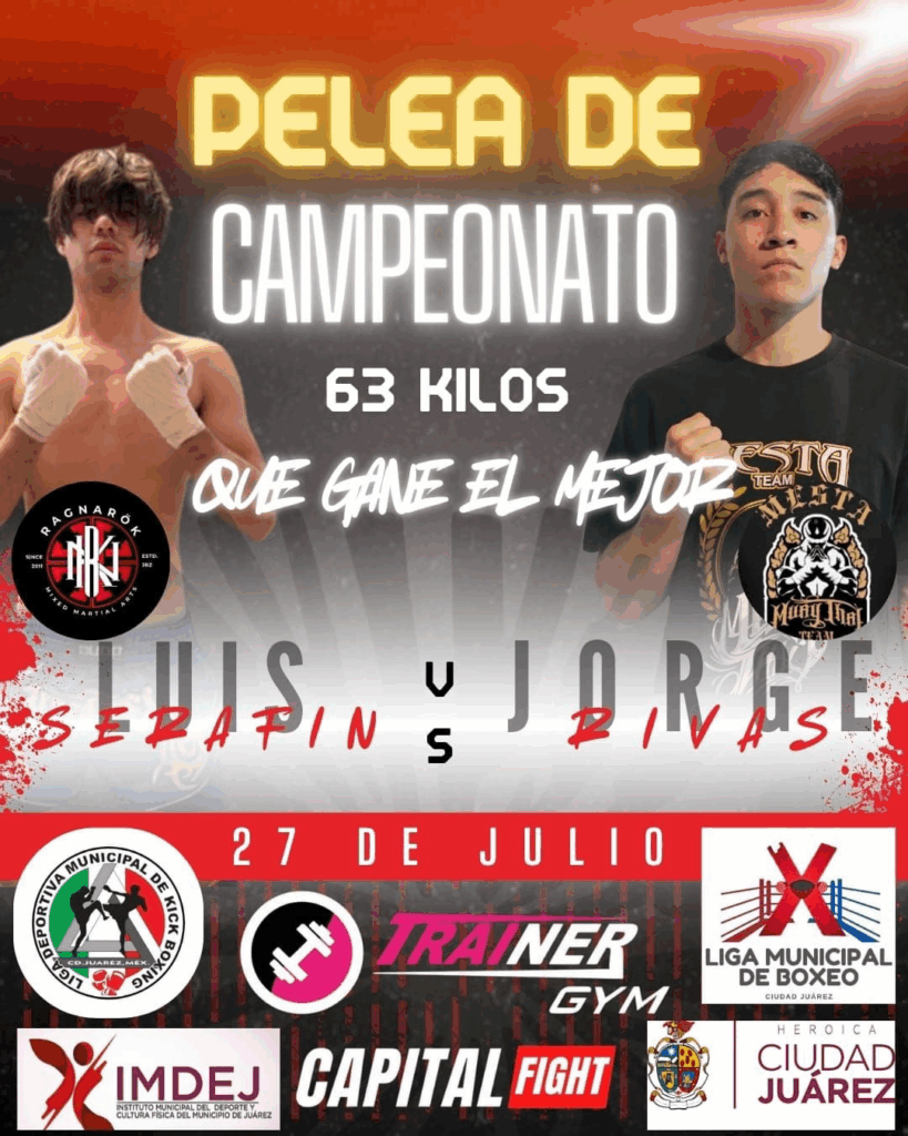Hasta el momento, se tiene confirmada la pelea de campeonato municipal de kick boxing, entre Luis Serafín contra Jorge Rivas en la categoría de los 63 kilos.