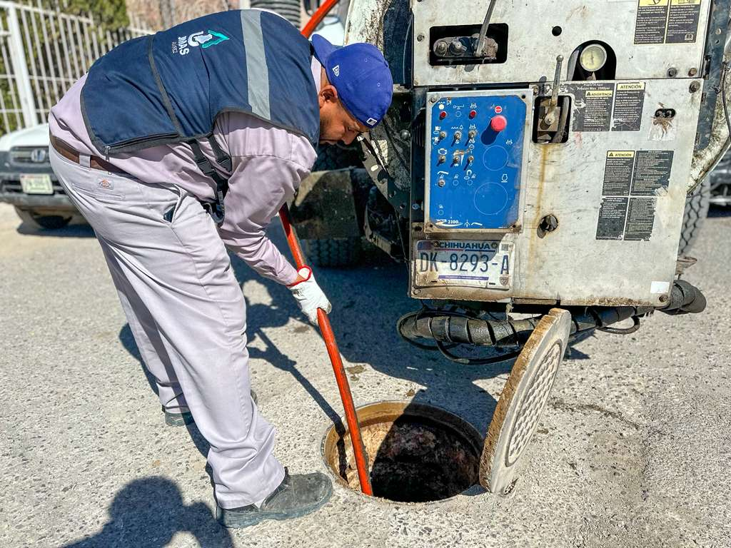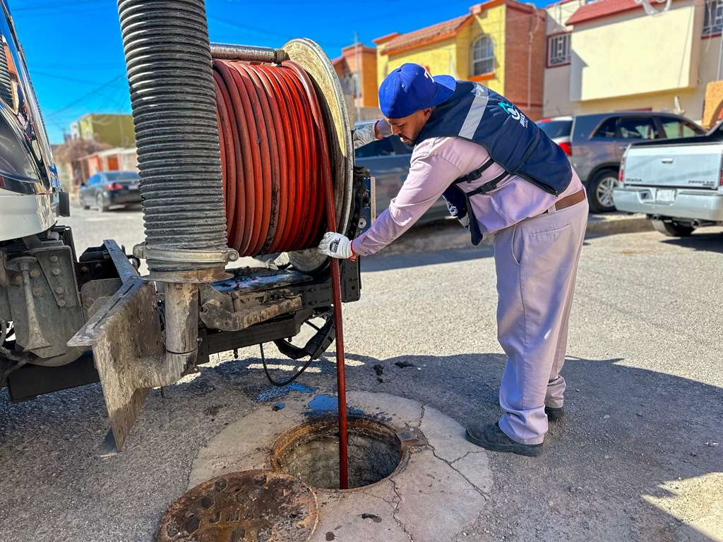 Cuadrillas del Departamento de Alcantarillado de la Junta Municipal de Agua y Saneamiento de Juárez (JMAS) realizaron un operativo de limpieza en la red de drenaje del fraccionamiento La Floresta, la cual se encontraba obstruida por basura y desechos, principalmente toallas húmedas.
