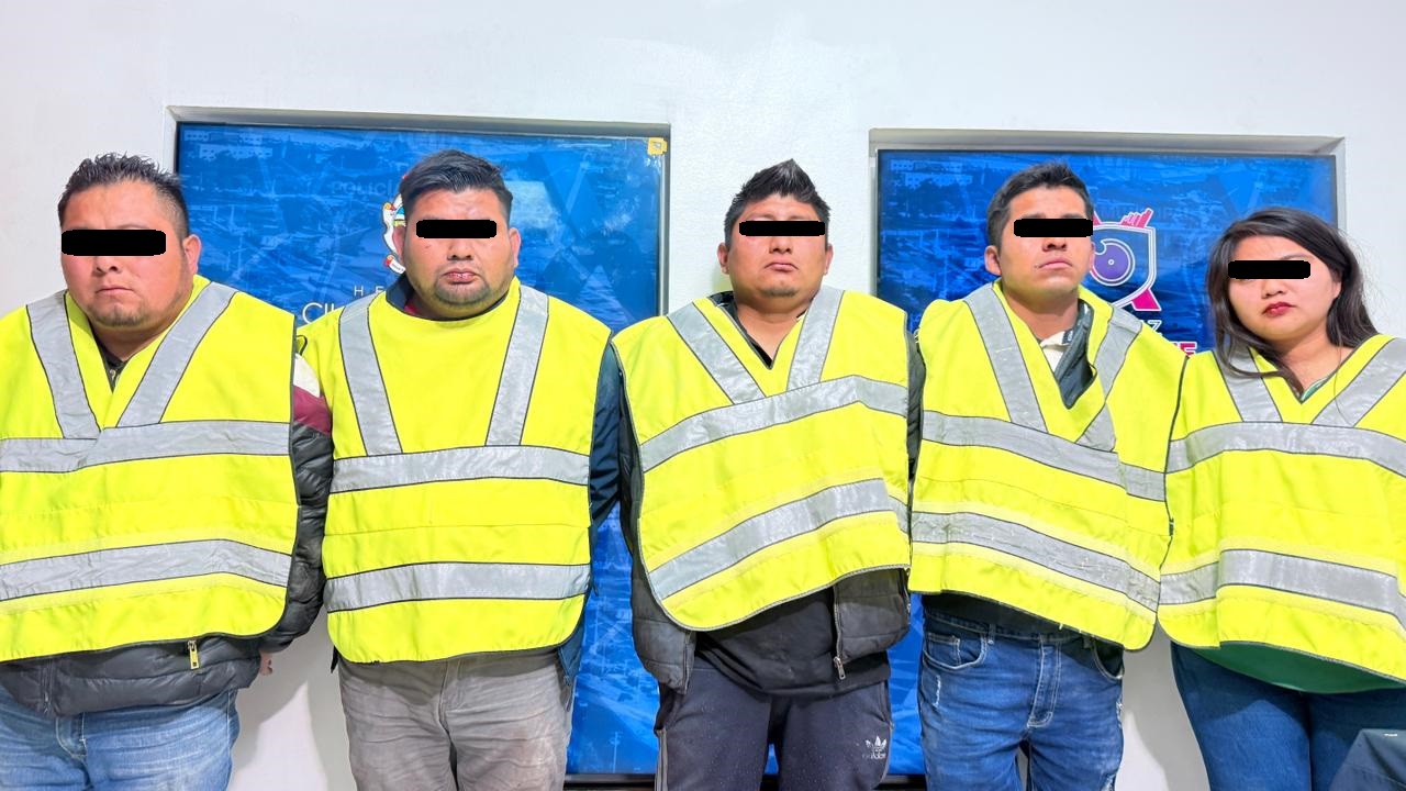Previa lectura de derechos, Cristina U. S. de 27 años, Amador C. T. de 38 años, Cristian Jesús M. T. de 24 años, Leodegario C. V. de 30 años y José Luis G. de 43 años, fueron consignados ante la autoridad correspondiente por su presunta responsabilidad en la comisión del delito antes mencionado.